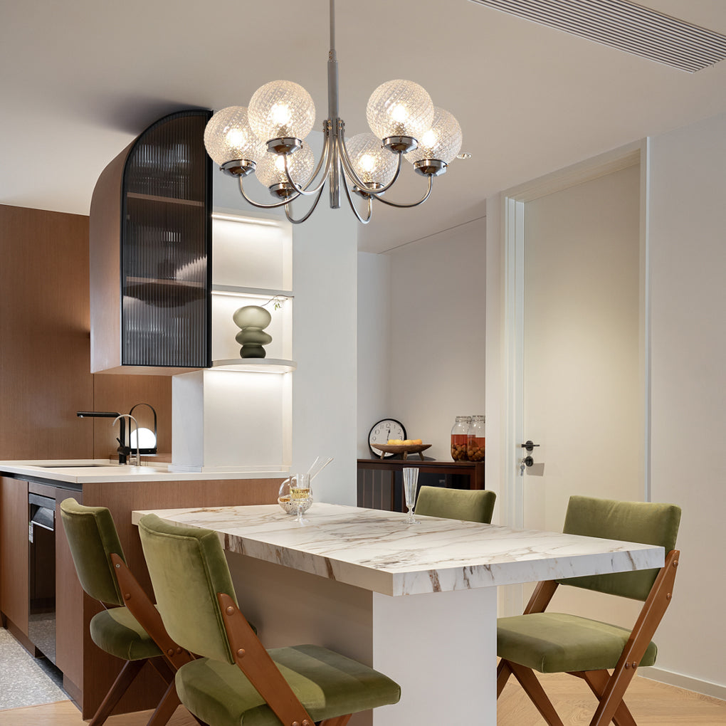 6 Lights Minimalist Planet Glass Balls Postmodern Chandelier Hanging Lights