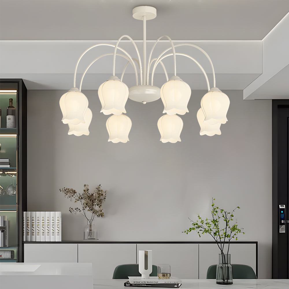 8 Heads Pastoral Bell Orchid Flowers 3 Step Dimming French Style Chandelier