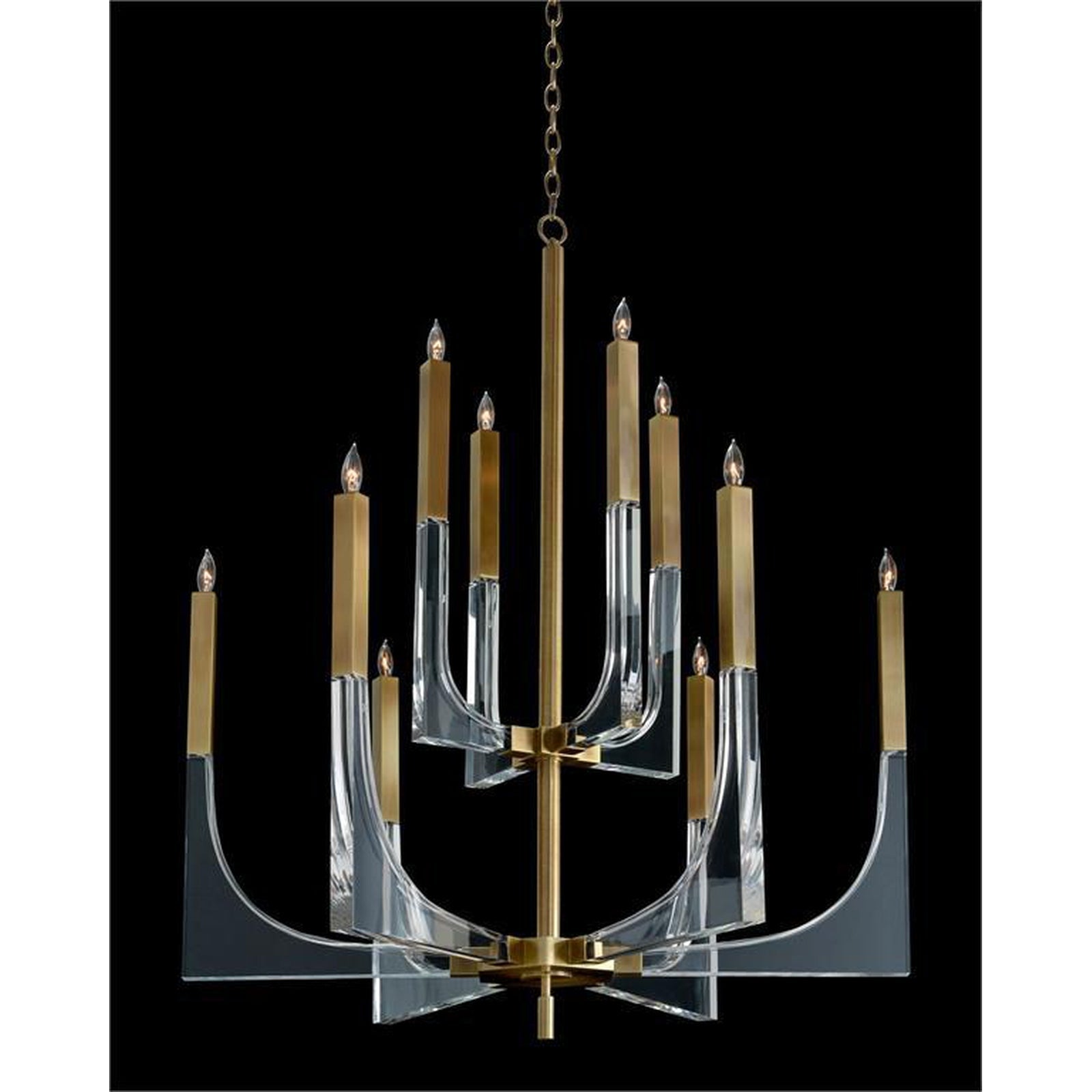 John Richard Acrylic And Brass Ten-Light Chandelier