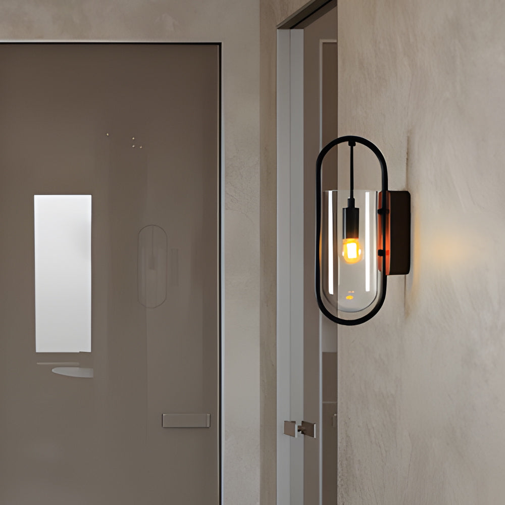 Simple Metal Frame Glass Shade American Style Wall Sconce Lighting