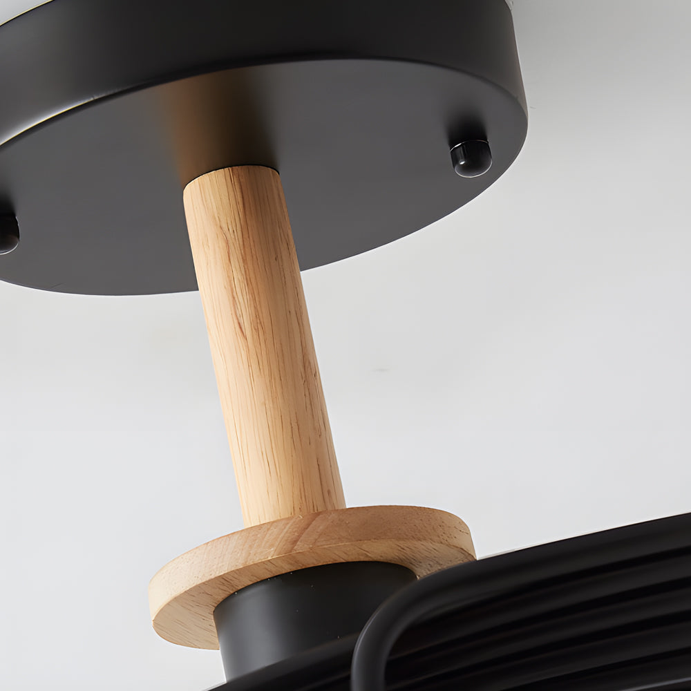 • This semi-flush mount ceiling light is made of quality materials such as iron, glass shade, and wooden trim, and undergoes multiple processes to ensure durability and refinement. Its spiral metal lamp body exudes a unique charm. Each spiral metal lamp stand is equipped with a white glass shade, arranged in a unique and orderly manner, creating a charming visual spectacle in any room.