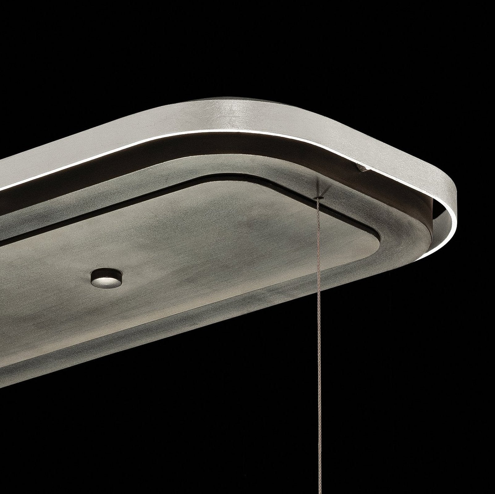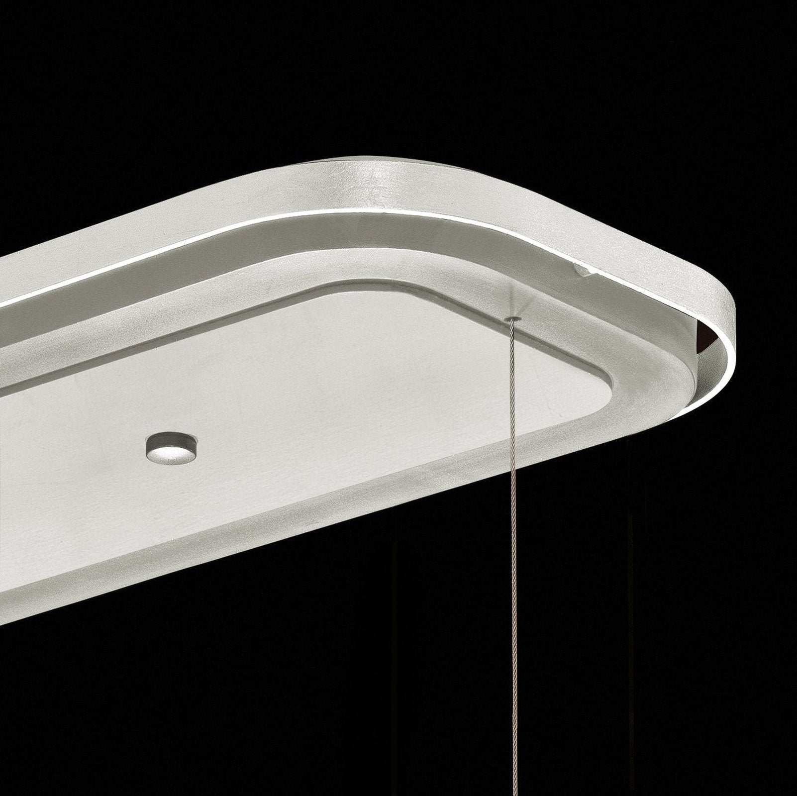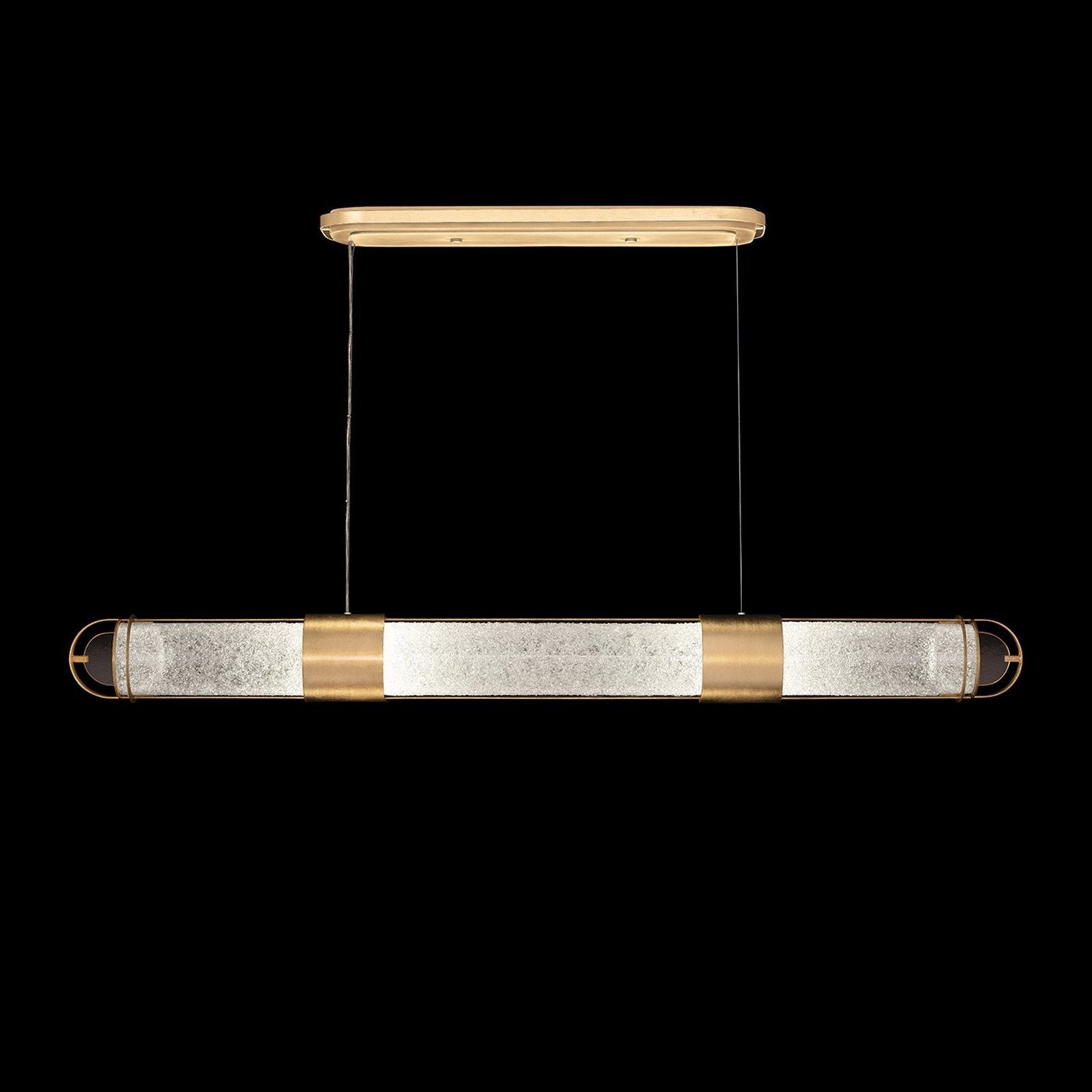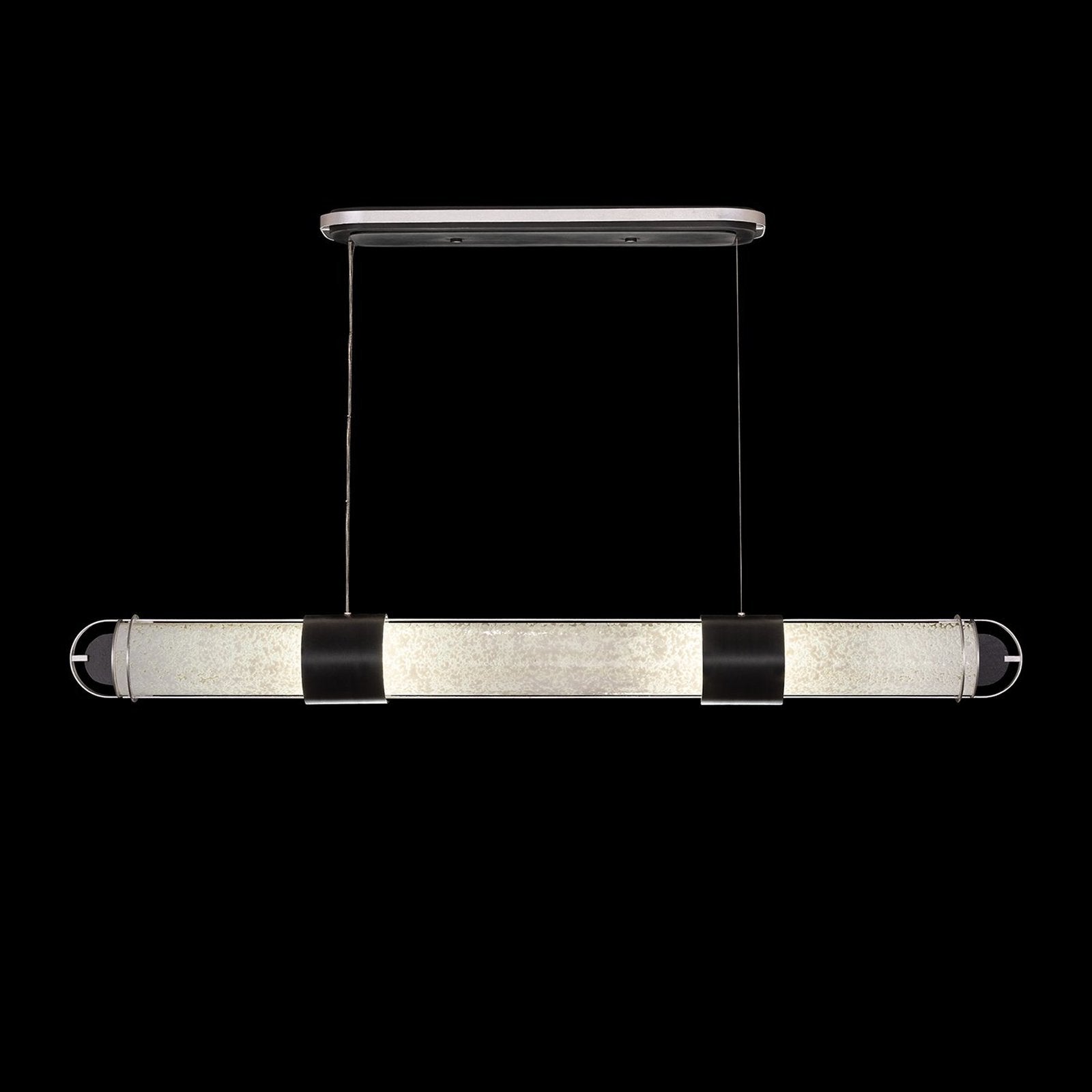 - LED pendant featuring illuminated cylinders formed by handcrafted glass set within a silhouette, beautifully lit from within, spanning space vertically or horizontally.