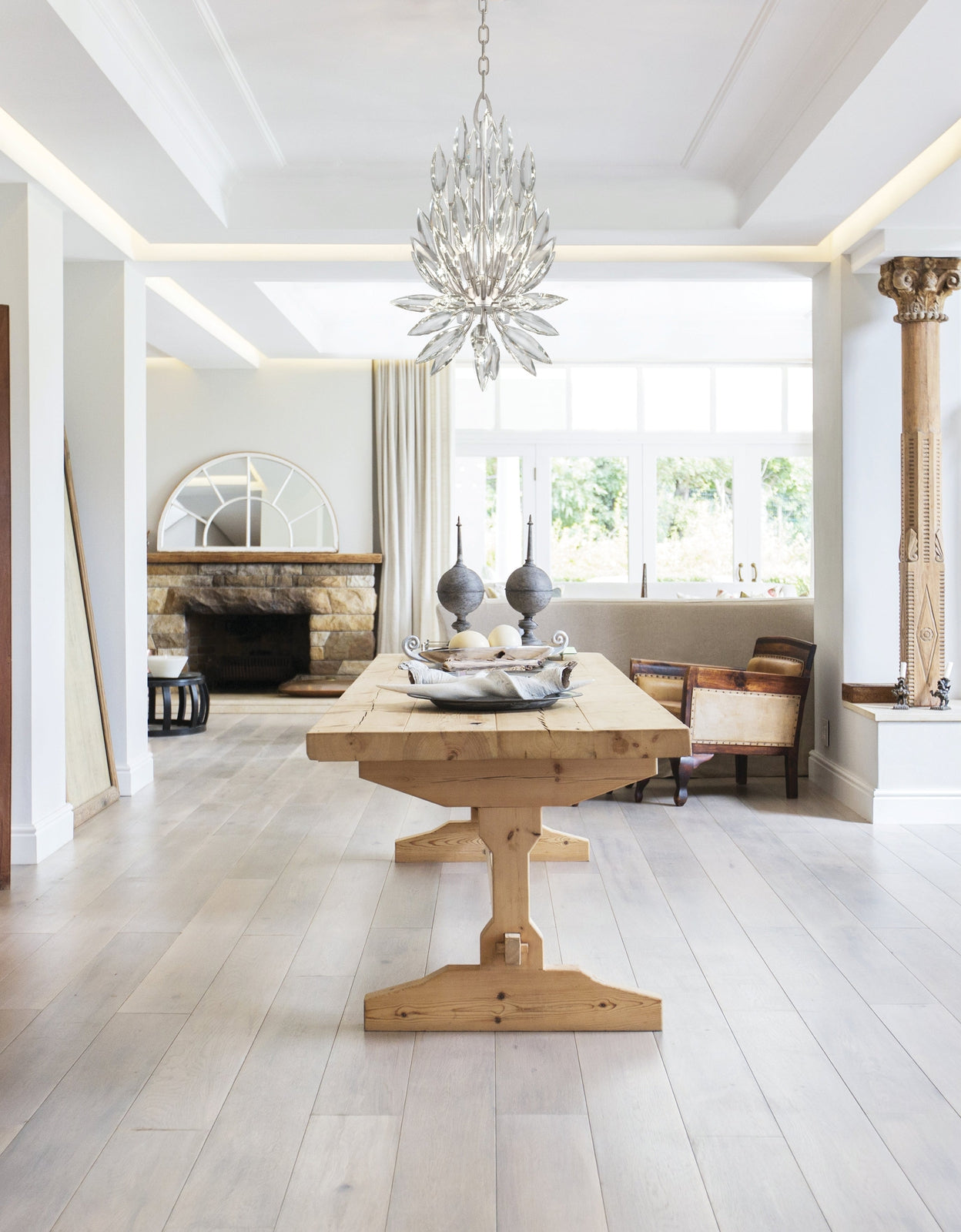 - Chandelier in gold/silver leaf finish with graceful bouquets of faceted crystal lily buds that create a naturally elegant lighting effect.