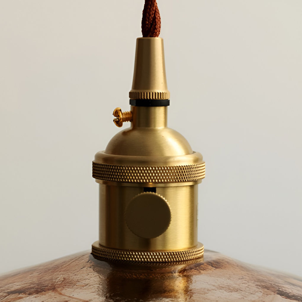 - When the lights are on, this single pendant lamp looks very beautiful and spreads the light well throughout the room. The retro walnut wood with brass lamp head and glass lampshade has a simple and clean style, which can decorate your room very well.