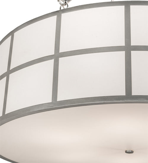 Inspired by a rotating 5-star restaurant perched atop a luxurious city hotel. This unique ceiling fixture features geometric gridwork accents. Cilindro Barnabas reveals a White Textrene shade and a beautiful Nickel powder coat finish. This handsome fixture is complemented with a Statuario Idalight bottom diffuser. Handcrafted in our 180,000 manufacturing facility in Yorkville, NY. This pendant is available in custom colors, styles and sizes. Dimmable energy efficient lamping options are offered. UL and cUL listed for dry and damp locations