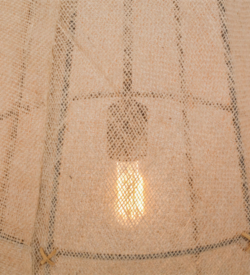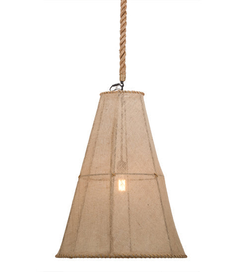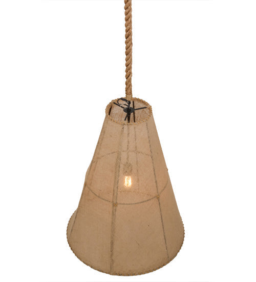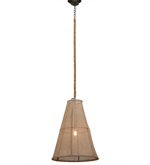 This unique lighting design features a Burlap shade hand woven on a cylindrical shaped frame. The pendant is suspended with a natural colored rope. The fixture is enhanced with a Black finish. Handcrafted in our 180,000 square foot manufacturing facility in Yorkville, NY. Fixture designs, metal finishes and Pendant sizes can be customized to meet your needs. UL and cUL listed for dry and damp locations however we do not recommend installing it in spaces that experience a large amount of moisture due to the fabric shade.