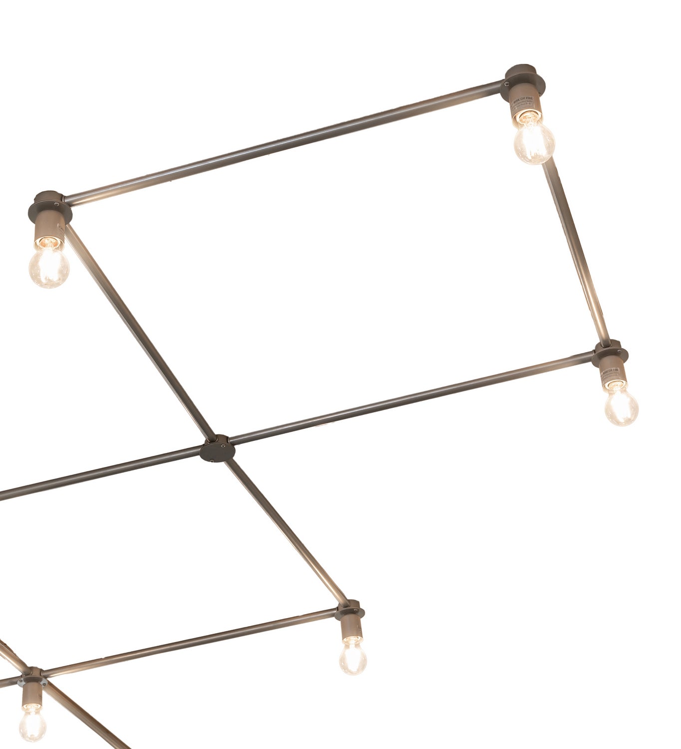A striking crossbar scissor-like design brilliantly illuminates with minimalist styling and industrial flair. This massively elongated ceiling fixture is finished in Titanium Gold and illuminates with 11 LED lamps for beautiful ambient illumination, energy efficiency and long life. The Pronograde Jack Corridor Flushmount is featured in our American Made, American designed, handmade Industrial Lighting Collection. UL and cUL listed for dry and damp locations. Manufactured in Yorkville, New York.