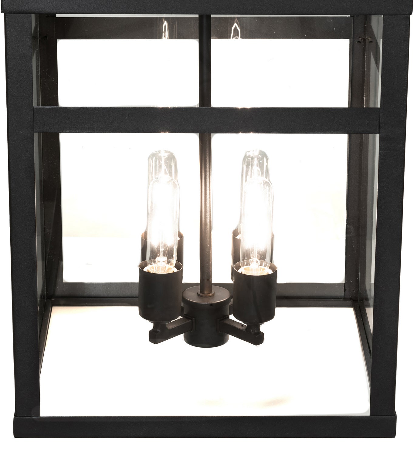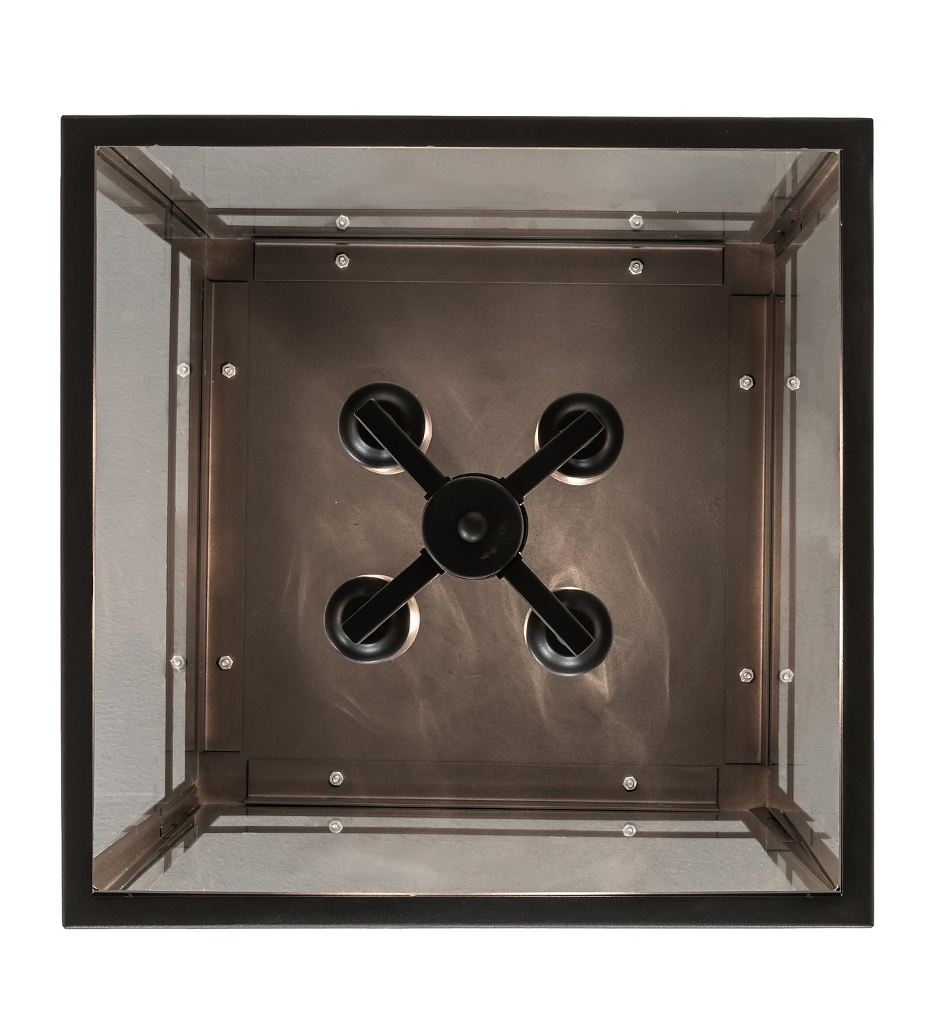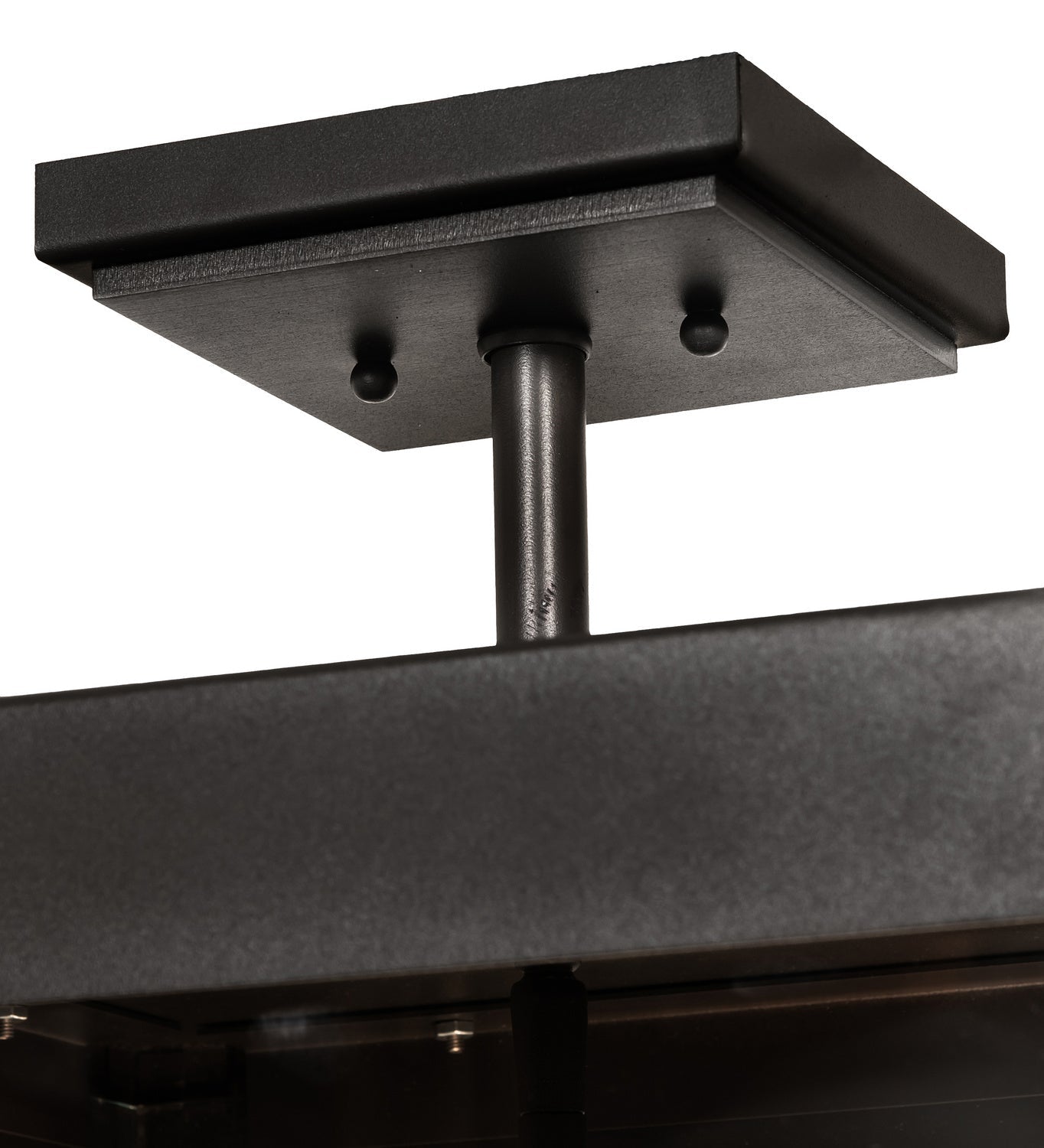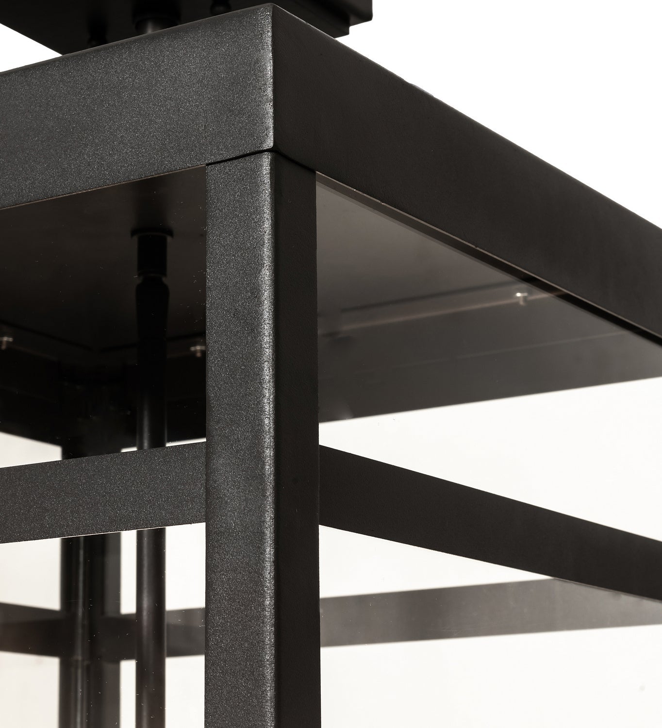 Rendering a stunning architectural look. This structural cube-like design features a sophisticated Wrought Iron metal frame and decorative accents. The ceiling fixture renders a Clear Float Glass lens that reveals 4 Edison-styled lamps for beautiful ambient illumination. The Quadrato 4 Light Semi-Flushmount is included in our American-made, American-designed, handcrafted Transitional Collection and manufactured in Yorkville, New York. UL and cUL listed for dry and damp locations.