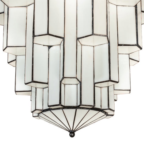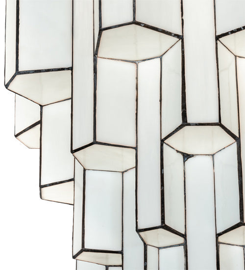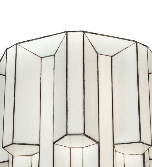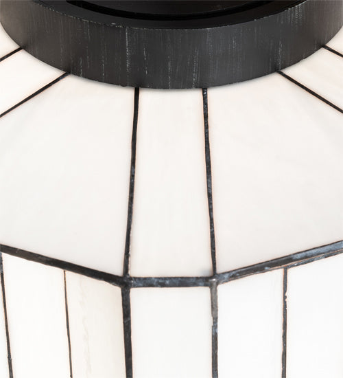 The material is Steel and Glass. The finish is Antique Iron Gate. The stained glass is White Opal.